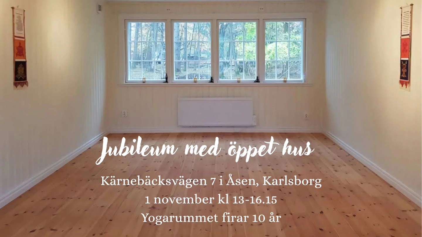 För 10 år sedan byggde min pappa ut den lilla stugan. Yogarummet var klart 29/10 och första yogagruppen välkomnades 2/11. Hur mycket detta rum betytt och betyder för mig och besökare är svårt att uttrycka i ord. Självklart ska det firas.
